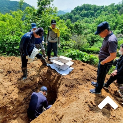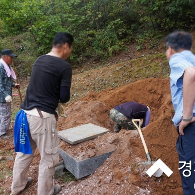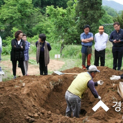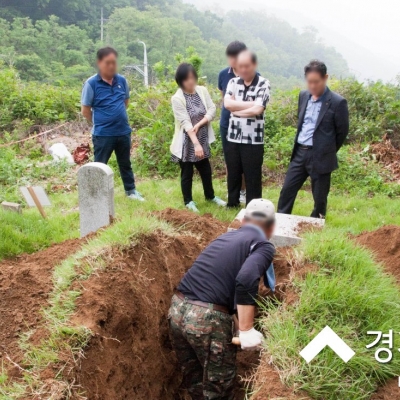 그동안의 많은 경험으로 광중(관이 매장되어 있는 구덩이)에 물이 고여 있는 경우가 많았던, 경기도 파주시 광탄면에 위치한 용미리 제2묘지 4단지에서 묘지화장을 위해 묘지개장하여 ...