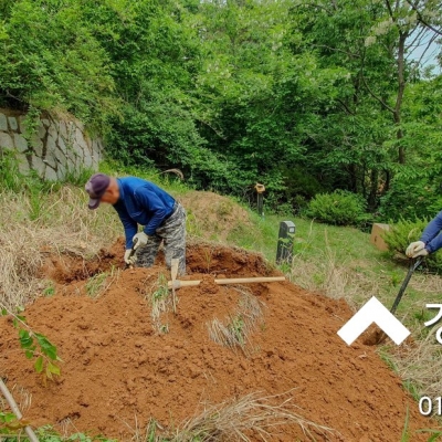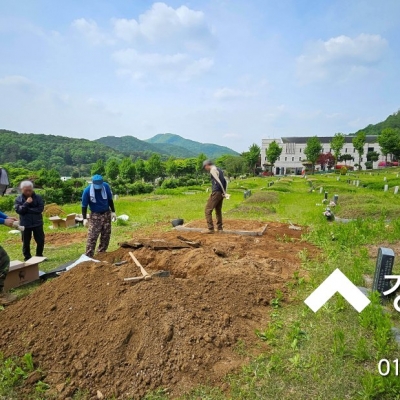 2023년 윤달에 묘지이장을 계획하셨으나, 장마 비 피해로 용미리제1묘지 100구역 부모님 합장묘 묘지개장을 진행해 드렸습니다.