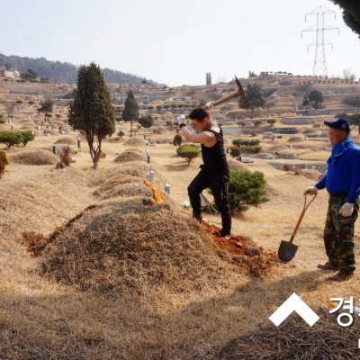 서울에서 그리 멀지는 않지만 잡초가 무성하고 잔디관리가 어려운, 경기도 파주시 파주읍 파주리공동묘지에서 묘지화장을 하기 위해 묘지개장 파묘하여 유골을 수습해 드렸습니다. 분...