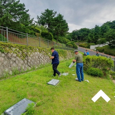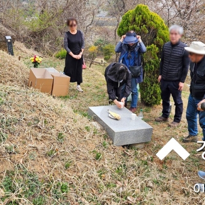 경기도 파주시 광탄면 용미리 소재 서울시립 용미리제1묘지 300구역 조성묘 7단지에 화장 후 봉안함에 모신 모친 봉안함(유골함)을 부부합장 묘지합장 후 잔디(사초작업)를 입혀 드렸...