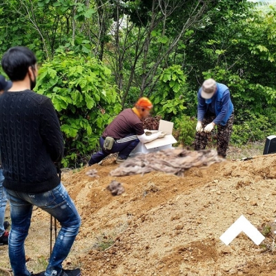 경기도 고양시 벽제동 소재 서울시립 벽제리묘지 6구역 산꼭대기에 매장되어 계신지 오래된 부친의 묘소를 따님의 요청으로 비 오는 날 묘지개장 파묘하여 서울시립승화원에서 묘지화...