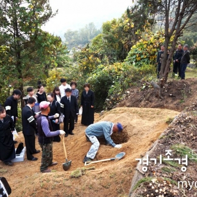 이번에 돌아가신 부친의 유해를 모친 묘소에 묘지합장 하여 모시는 날 비가 내려 더욱 엄숙한 분위기가 느껴졌습니다.